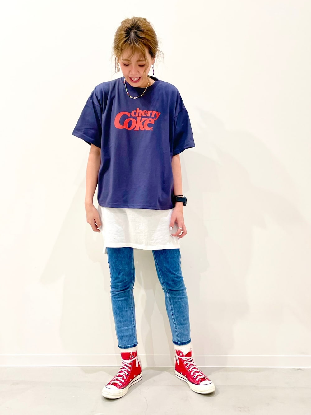 レトロなプリントがポイントの ❤️Cherry🍒Coke❤️Tシャツ🌞 シンプルだけど、存在感のあるデザインが◎✨✨ 短めの着丈なのでレイヤードや インスタイルがオススメです😇😇