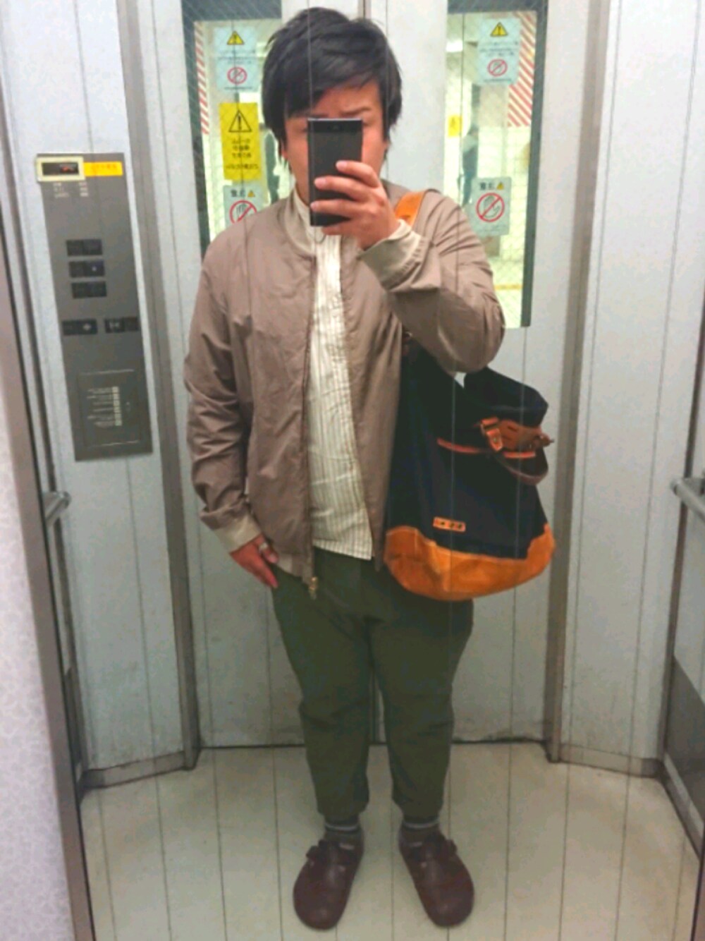 ちょっと近所へおでかけコーデ。革のバックは使うとあじがでていい感じ。