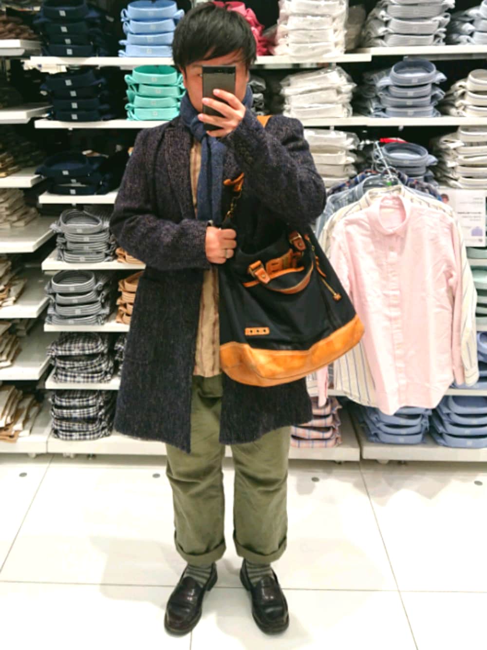 革のカバンええねー。ボーダーの靴下もいい感じかなと思いました(笑)