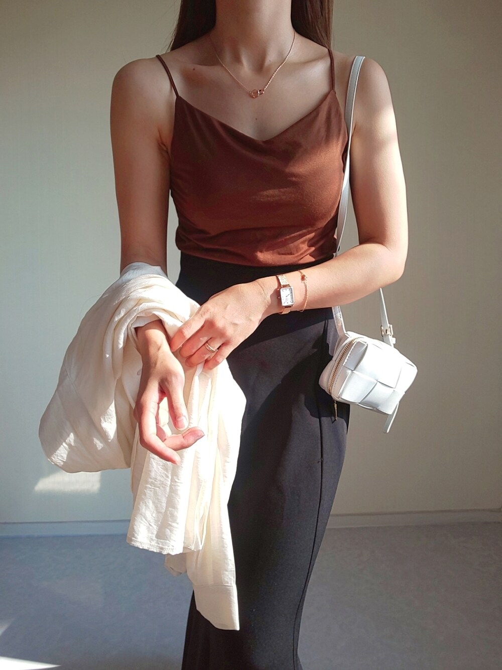 女性らしさ輝く スクエアの腕時計に ピンクゴールドのブレスレットとネックレス。 最高にかわい♡