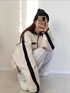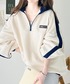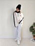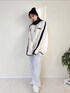 michanのスウェット「《Javaジャバコラボ》高見えラバーロゴ。冬に大活躍!ラフでお洒落な大人の配色フリースハーフジッププルオーバー」を使ったコーディネート