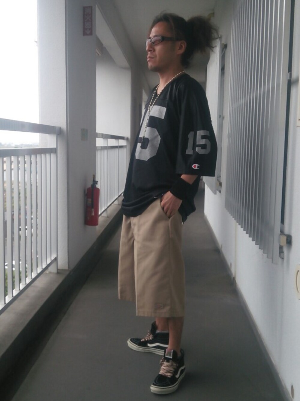 ブラック系のシューズを着用したメンズの夏コーディネートの1枚目の写真