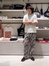 短丈、身幅広めでサラッとした肌触りの天竺素材のTシャツにインディアの柄パンツを合わせた夏スタイル。 Tシャツは短丈で身幅の広いものがオシャレ見えしますよ! Tシャツがシンプルなのでパンツはしっかり柄の入っているものがオススメです◎