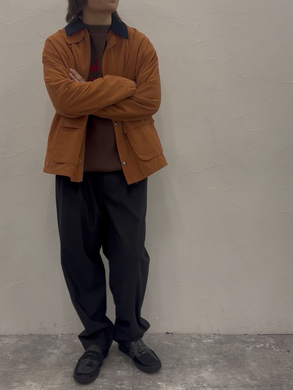 ご覧いただきありがとうございます! ハンティングブルゾンにスラックスを合わせたキレイめカジュアルスタイル。 ブルゾンは裏地がメッシュ素材になっており今の時期Tシャツの上からサラッと羽織っていただけますよ! スラックスやチノパンなどの合わせが大人っぽくてオススメです!