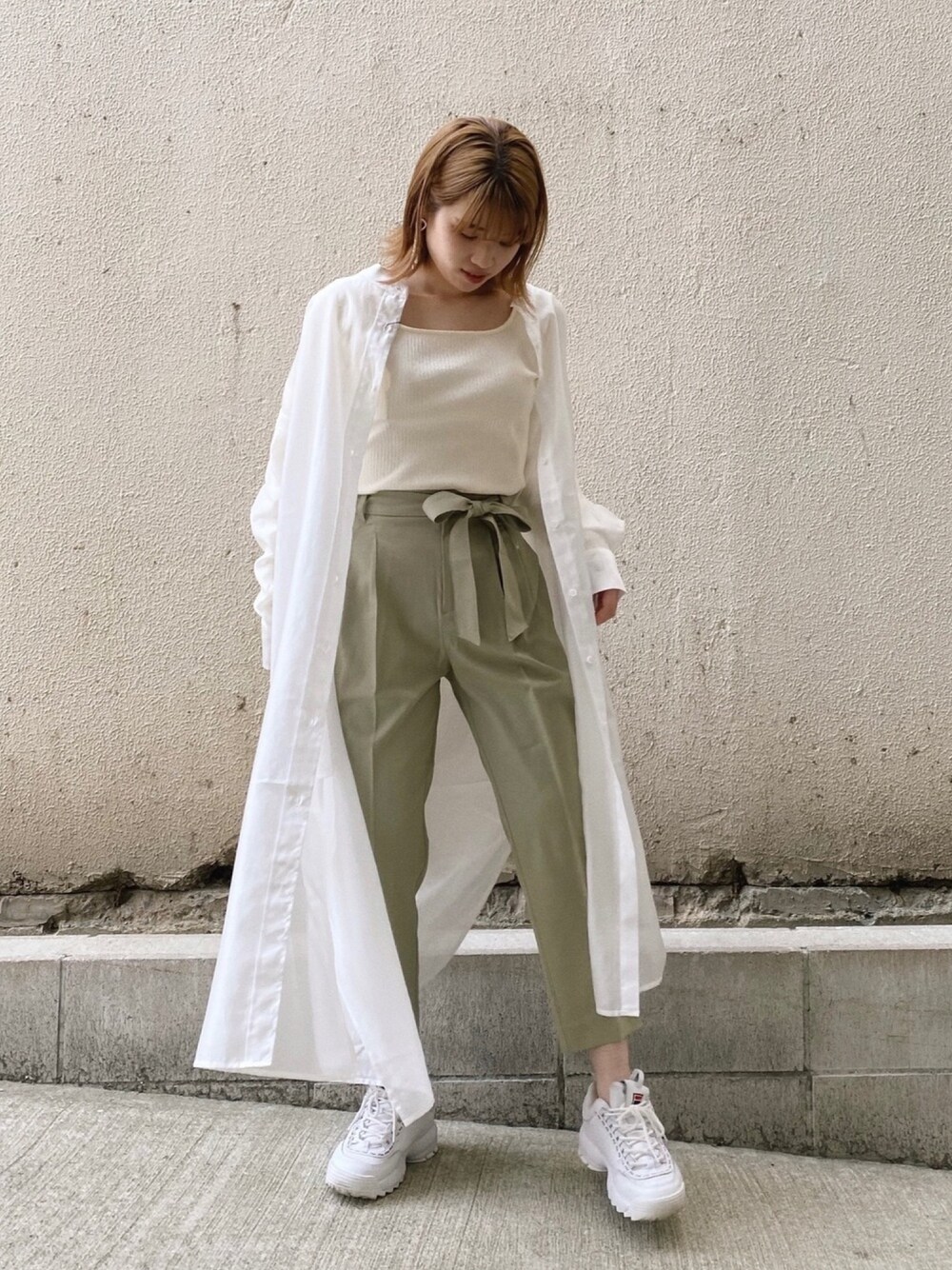 harukaのシャツワンピース「再生ポリバンドカラーシアーシャツワンピース」を使ったコーディネート