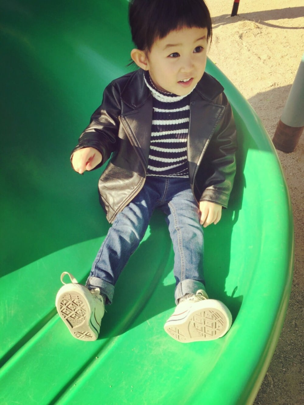 ☆初投稿☆ ライダースは裏地が迷彩柄でなかなか可愛いです✨ boysアイテムで発見👀! フード付きだけど、フードは外してタートル合わせでちょっと女の子らしく。。、💕