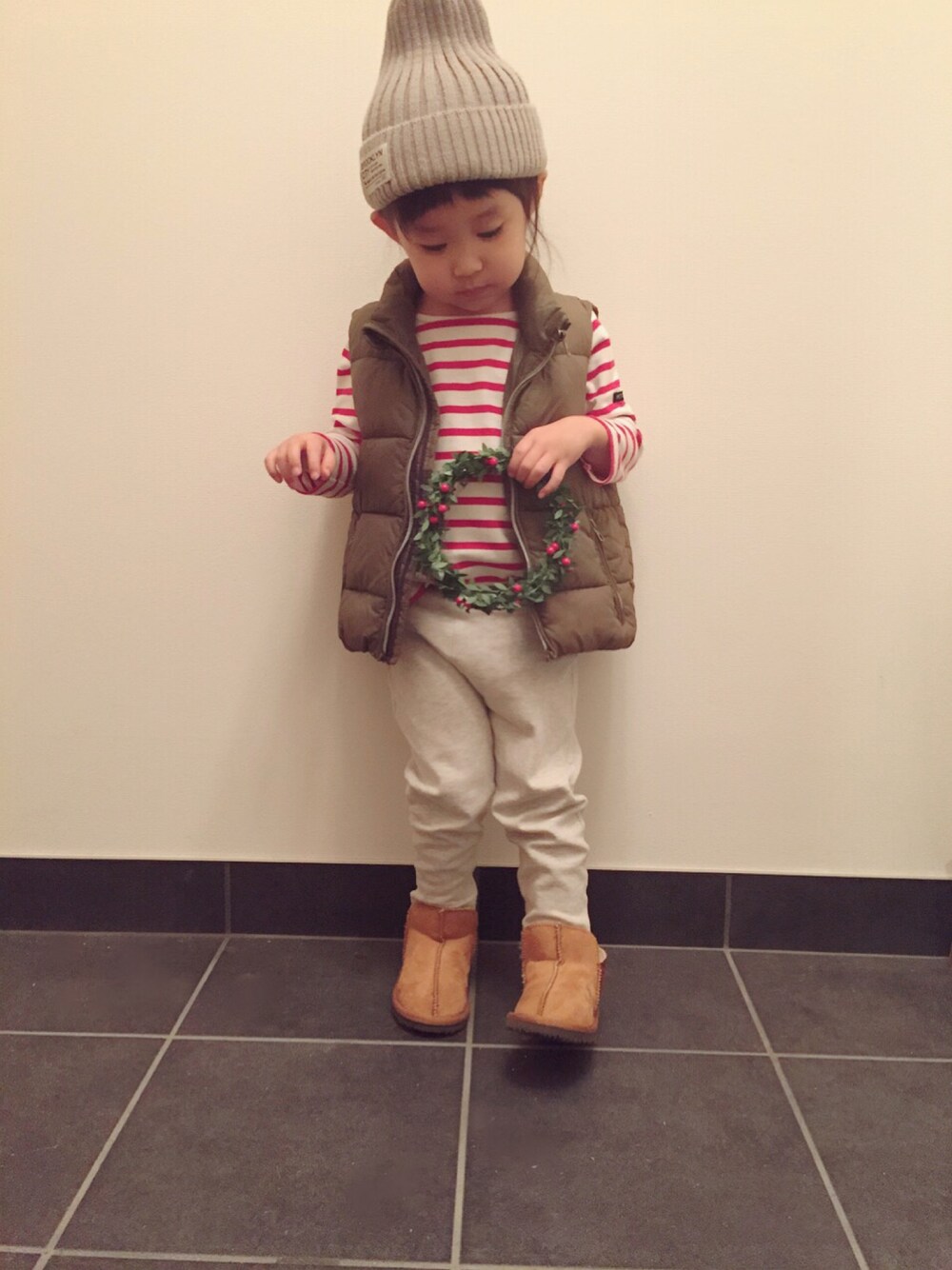 R kichiのダウンベストを使ったコーディネート
