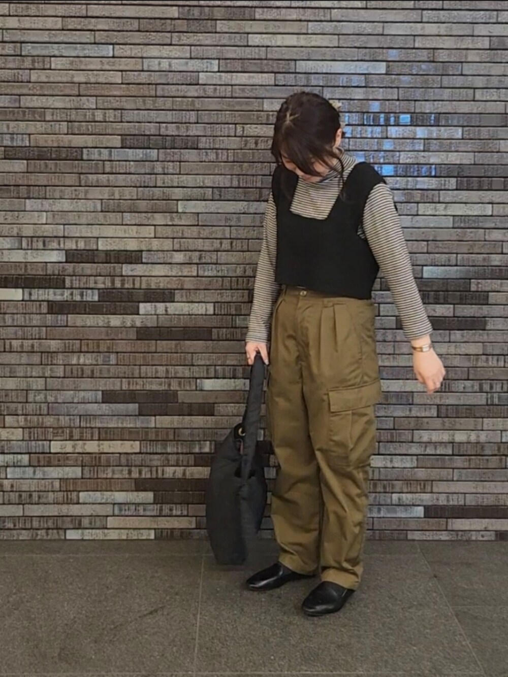 ゆったりと着られるカーゴパンツに、ショート丈のベストでコンパクトにまとめました🙆♀️✨ 秋物大幅値下げもしておりますので、 ご来店お待ちしております🦭
