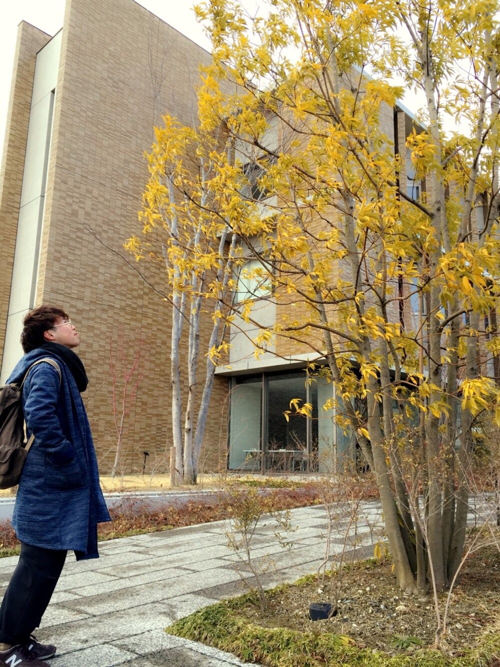 デニムジャケットの中に白ニットが今一番お気に入りなのでそれに合わせたコーデをしました! 写真に載せたような感じです! そのうえに変型コートを来て安定した黒のスラックスをボトムズとして合わせました! 首周りが寒いのでストールをつけ、ワンポイントととして丸メガネを使用しました!