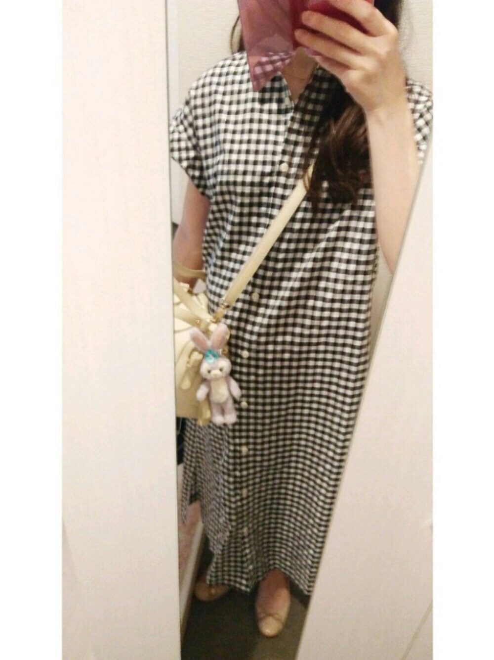 先日の妊婦検診👶 もう実は9か月です♥ 暑い日は涼しげなギンガムチェックのシャツワンピ👗