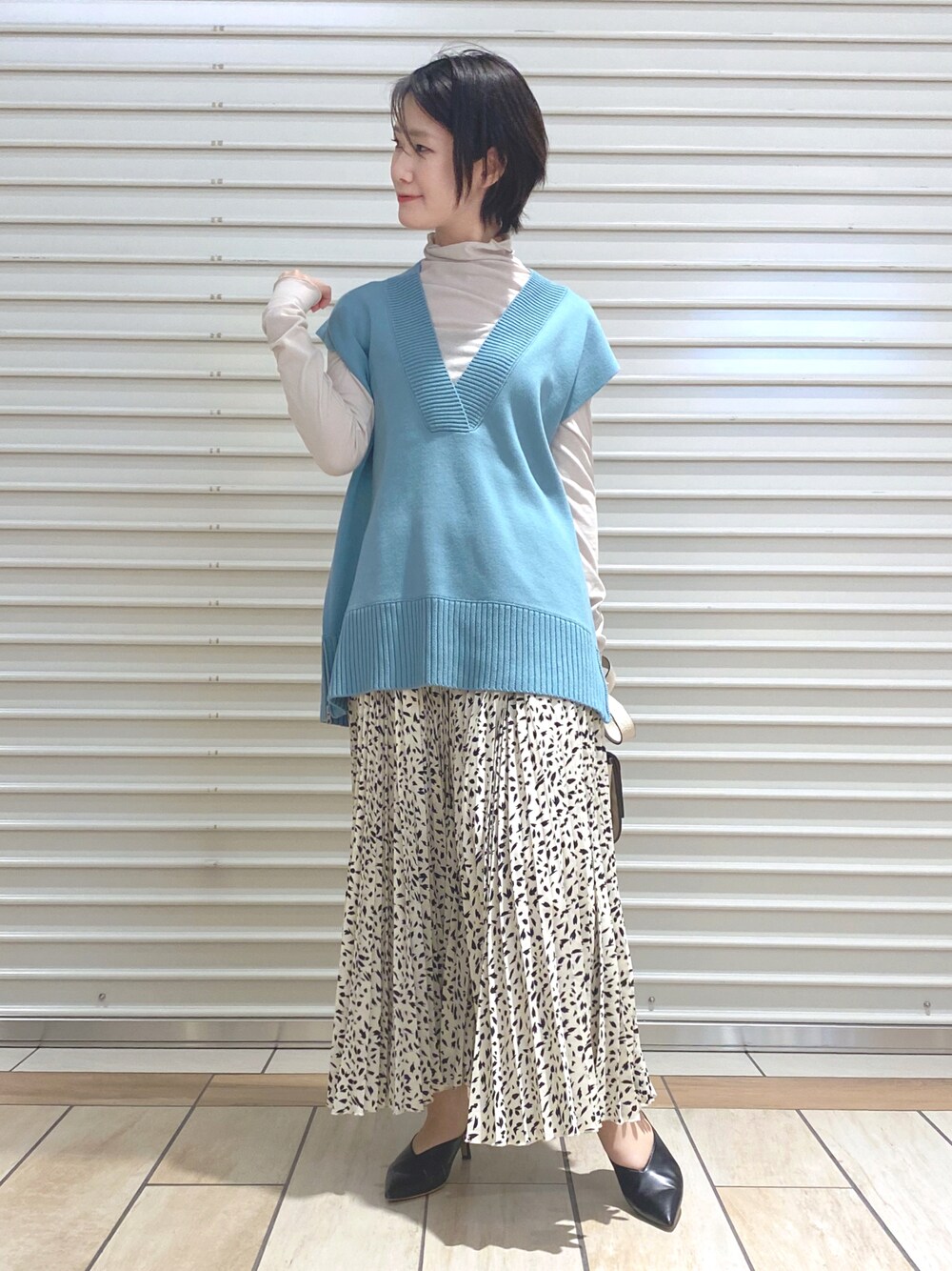 レナ(Jinesアトレ吉祥寺店)のベスト「Vネック サイドジップベスト」を使ったコーディネート