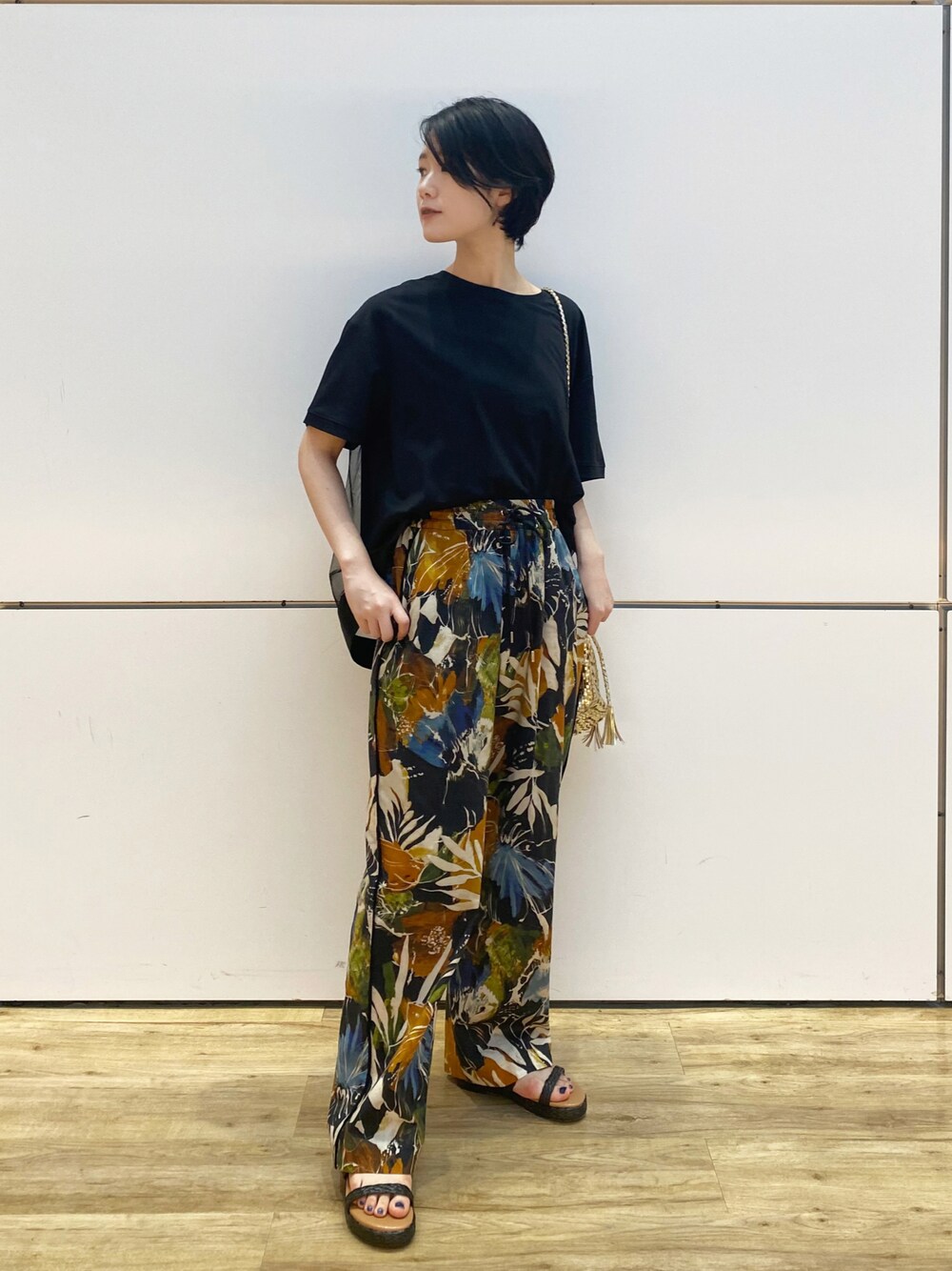 ブラック🖤&オレンジ🧡の ボタニカル柄パンツが目を惹く 大人のリラクシーコーデ♫ トップスは二の腕をしっかりカバーしつつ バックのチュールデザインがアクセントに✨ パンツはウエストゴム&紐で調節可能♫ ハイウエストで履くと 美脚効果も期待できる1着です! ________________ いつもご覧いただきありがとうございます😊 いいねとフォロー宜しくお願いします✨ Instagram↓ @_rena_jines