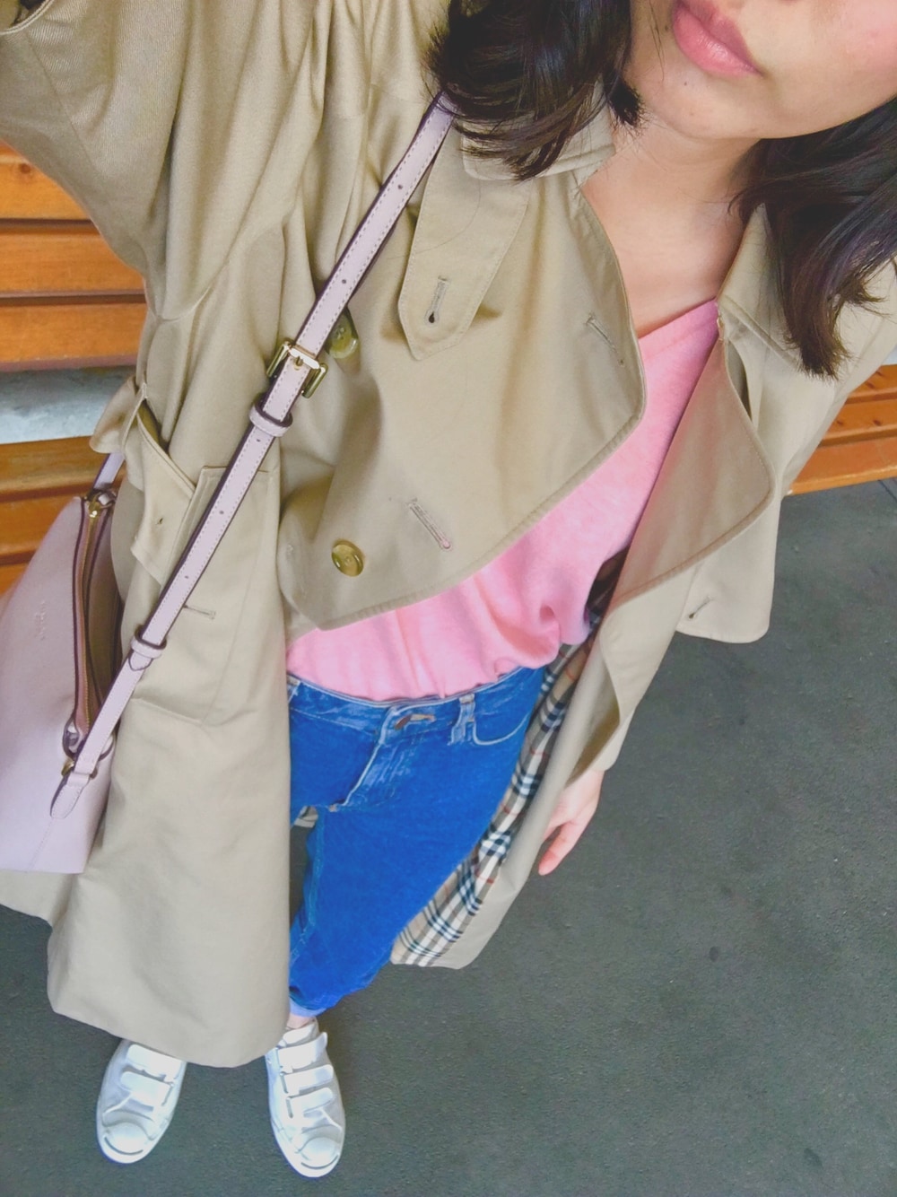トレンチばっかり 着る 病気 💭 ピンクニットは 無印良品週間で お得に ゲット💗 ピンク着といたら 春っぽいと おもてる…