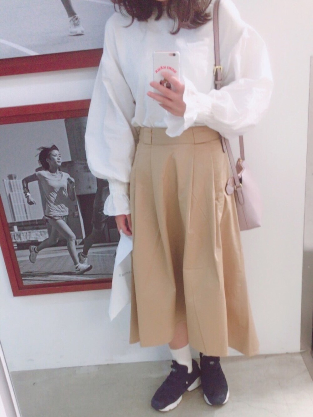 珍しく 女子感ある コーデ 。 トップス は ZARAの ボリューム袖 ブラウス。 袖だけ シャツ素材で お気に入り 。