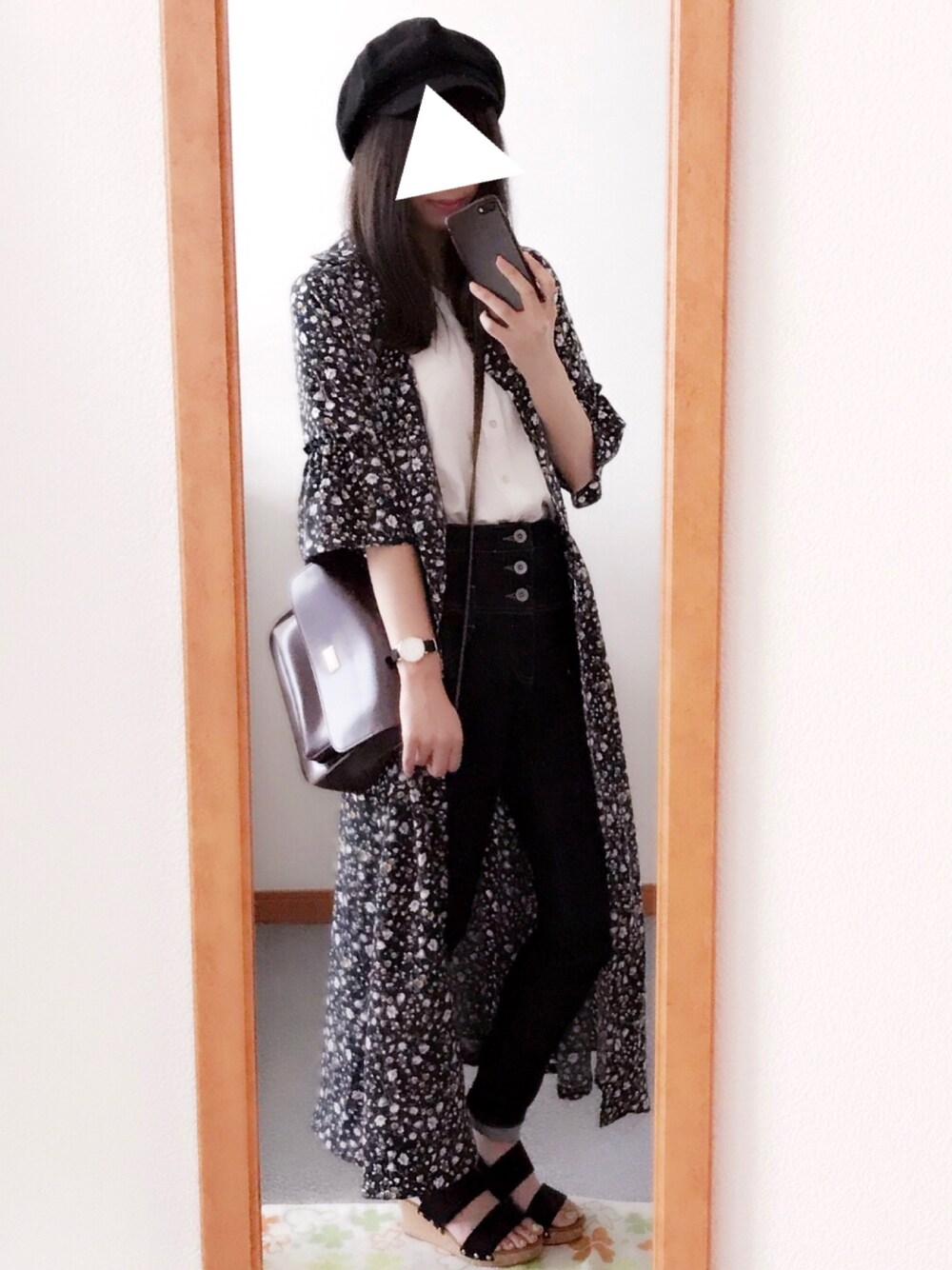 去年買った花柄ワンピースを羽織として使ってみました😎 ロングのアイテムは色々隠せるから好き。笑