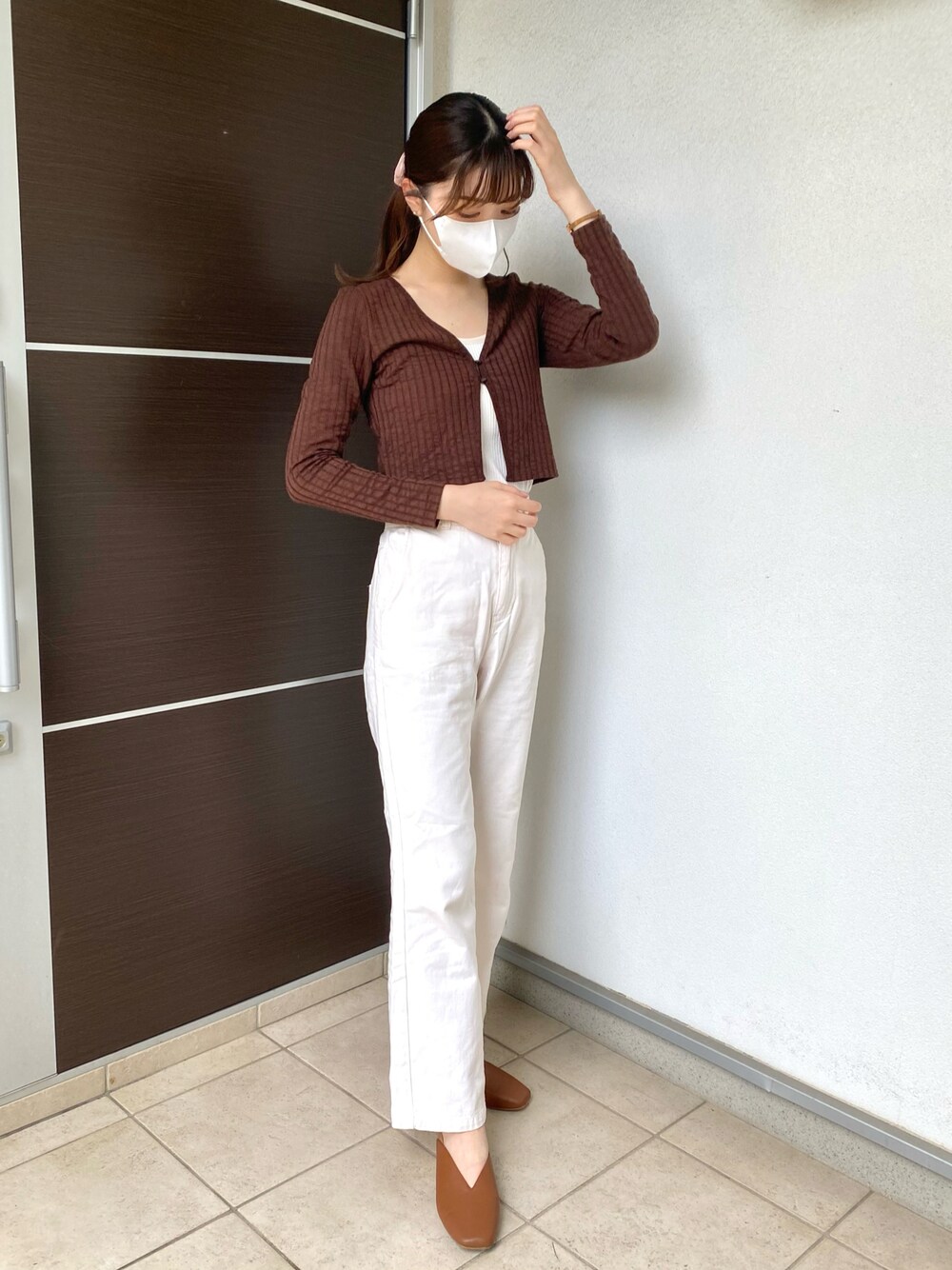 ベージュ×ホワイト🤍🤎 ぴったりめのトップスにストレートパンツを合わせて全体のバランスをとってます🦔