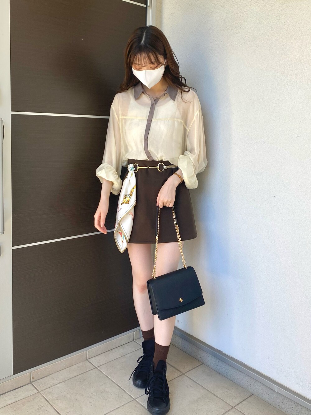 miy🦔 /ロンドン留学中のシャツ/ブラウス「シアー配色シャツ」を使ったコーディネート