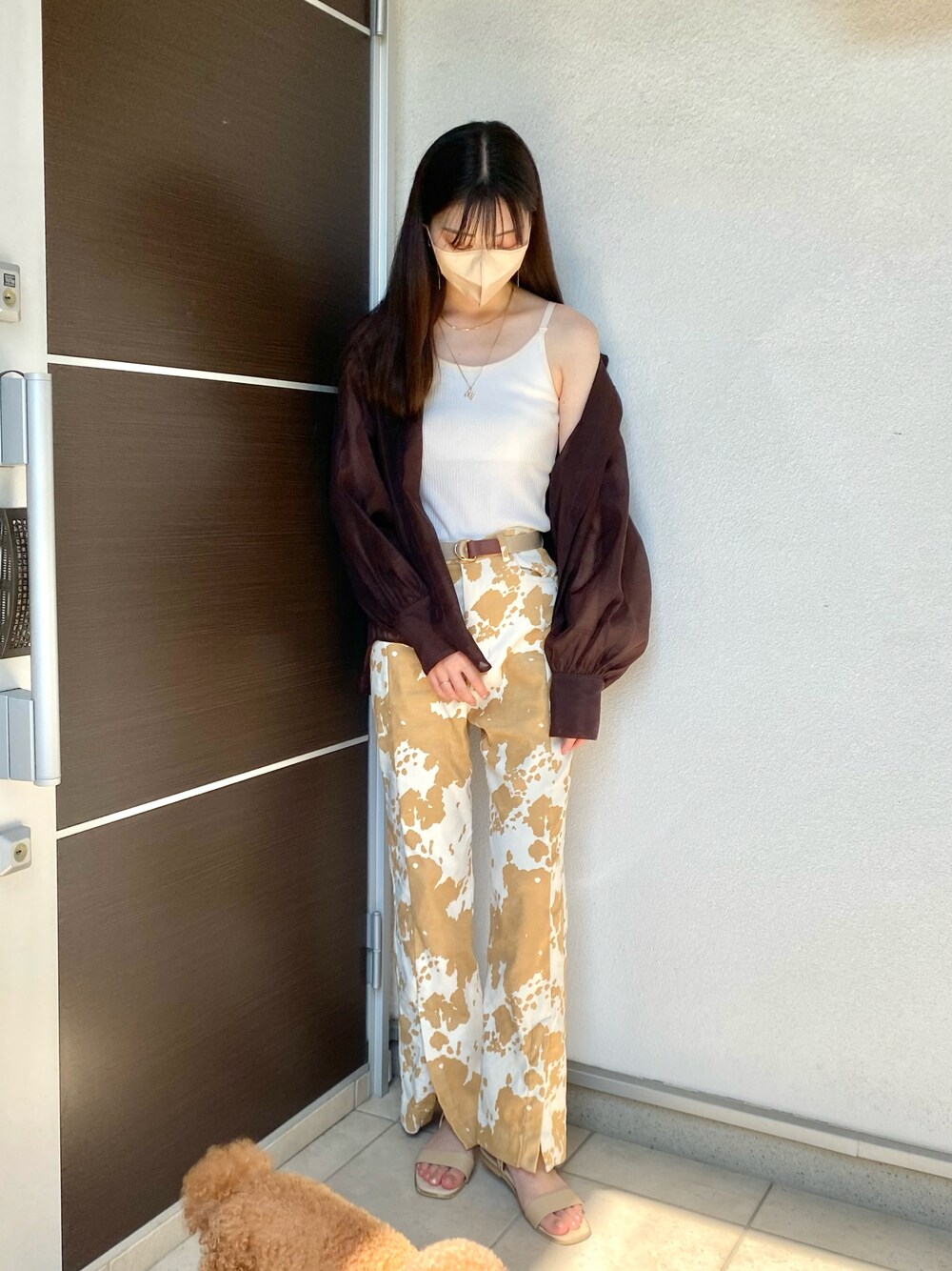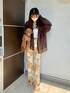 秋カラーを使ったSLYコーデ🍁 1枚目の足元に見切れてる子の正体は 2,3枚目をご覧ください🐾