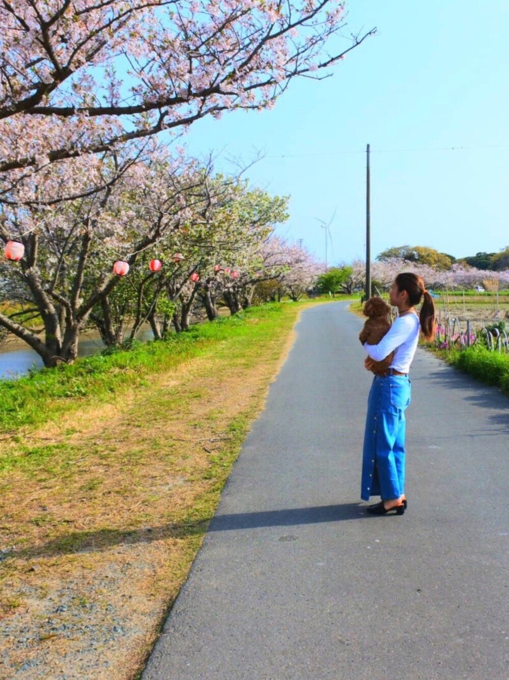 #地元の桜道 今日のコーデはカジュアルシンプルだけどデザインがほんと可愛いものになってる! デニムのワイドパンツはサイドにホックがあって外せる!そして丈が短めのため、147cmの私でも少し足首が見えるくらいではける!(ZARA) ミュールは甲の所がアシンメトリーにカットされてる!(AZUL by moussy) どのアイテムもほんと可愛い❤