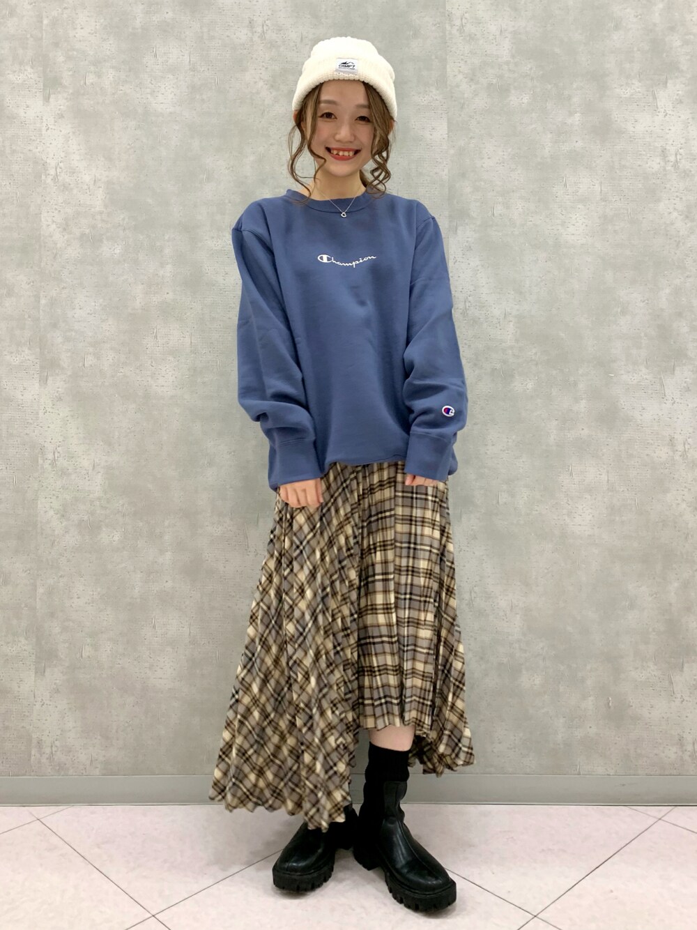 スウェットコーデ♡ チェックスカートと合わせると秋服らしくまとまります🌼