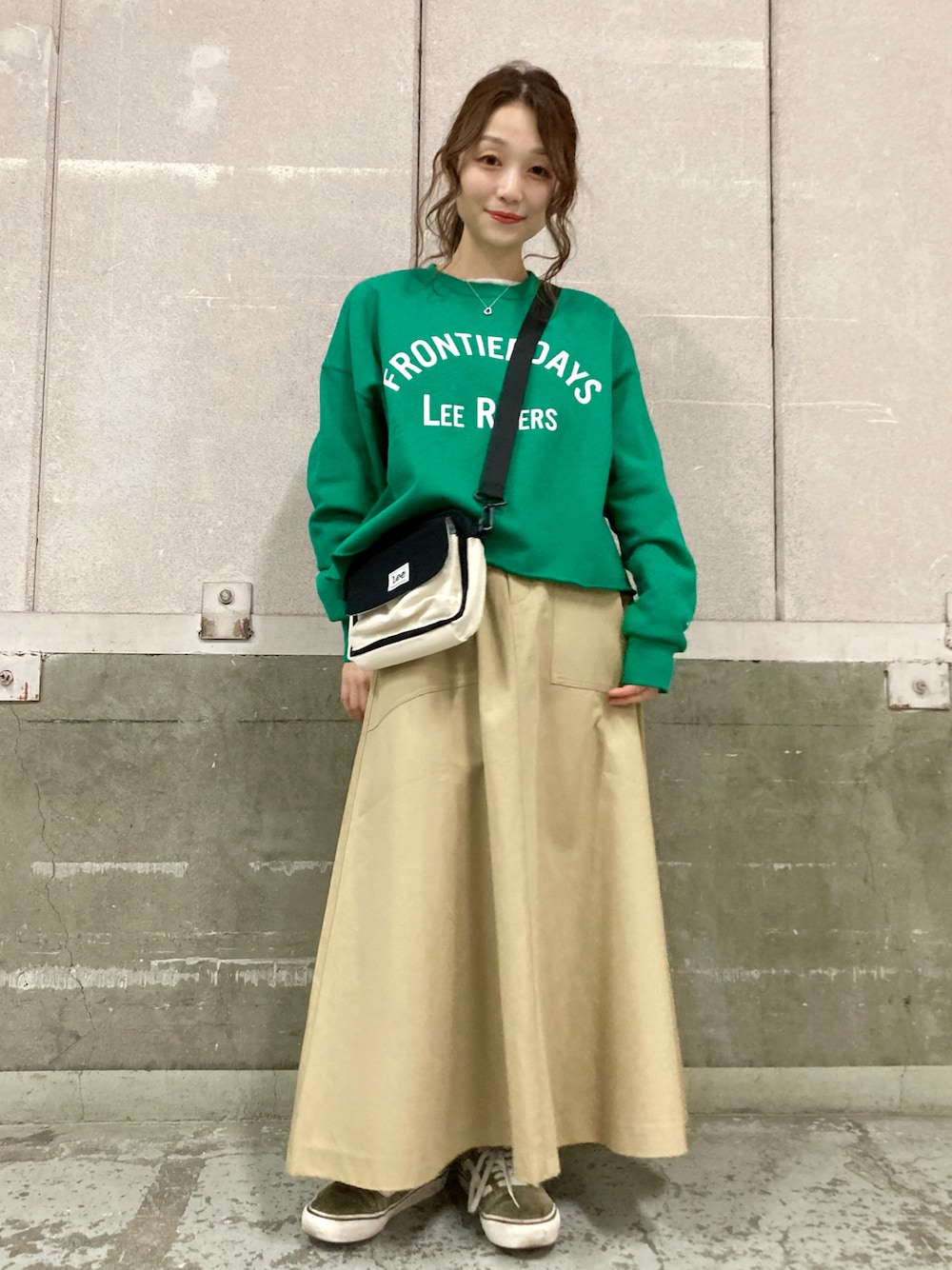 Leeのスウェットはトレンドのクロップド丈がかわいい♡ グリーンは顔まわり明るくなりますね☺︎