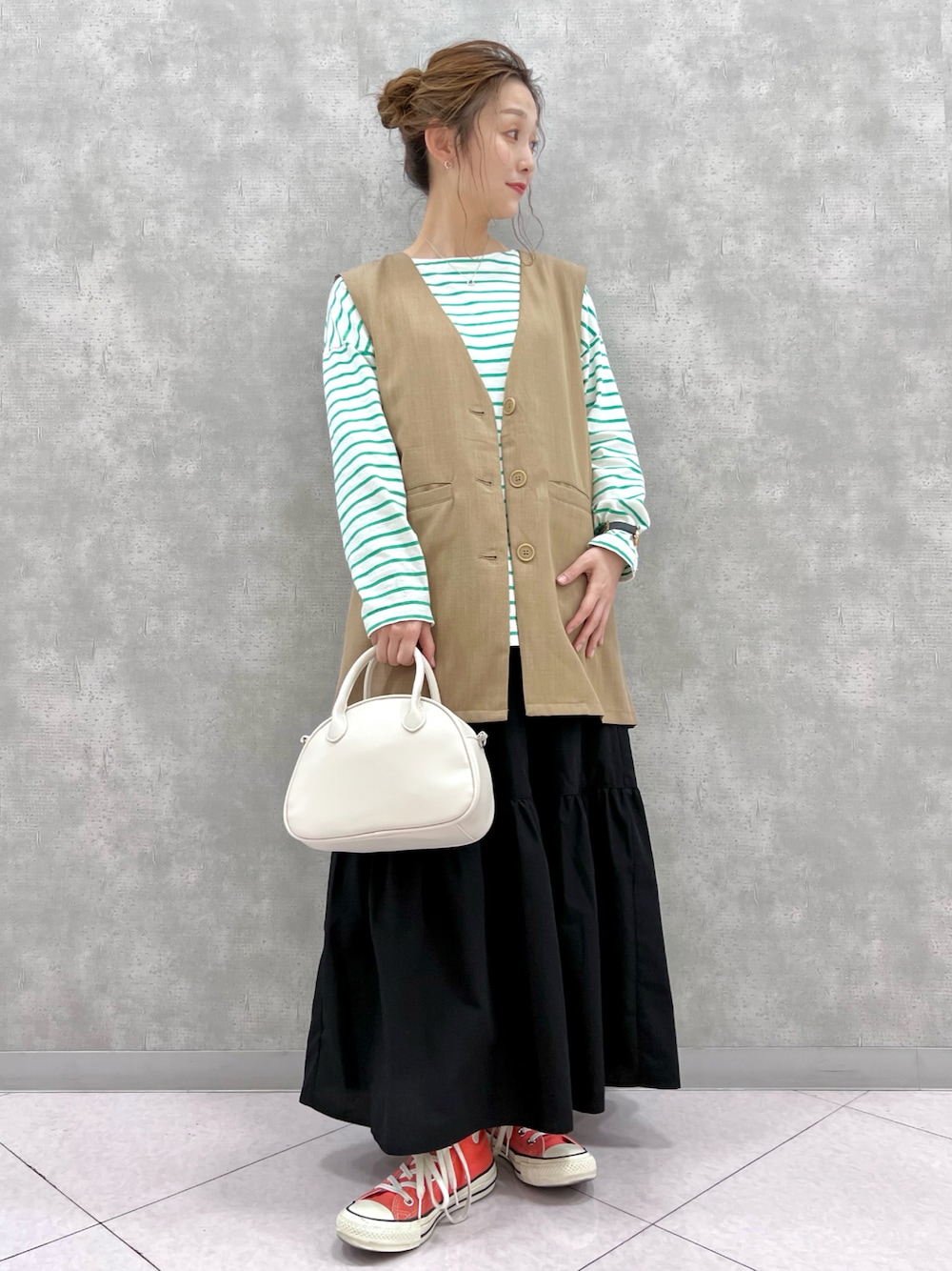 人気のベストに定番ボーダーあわせ! シンプルなボーダーでもカラーボーダーにするとこなれ感ばっちり👍👍