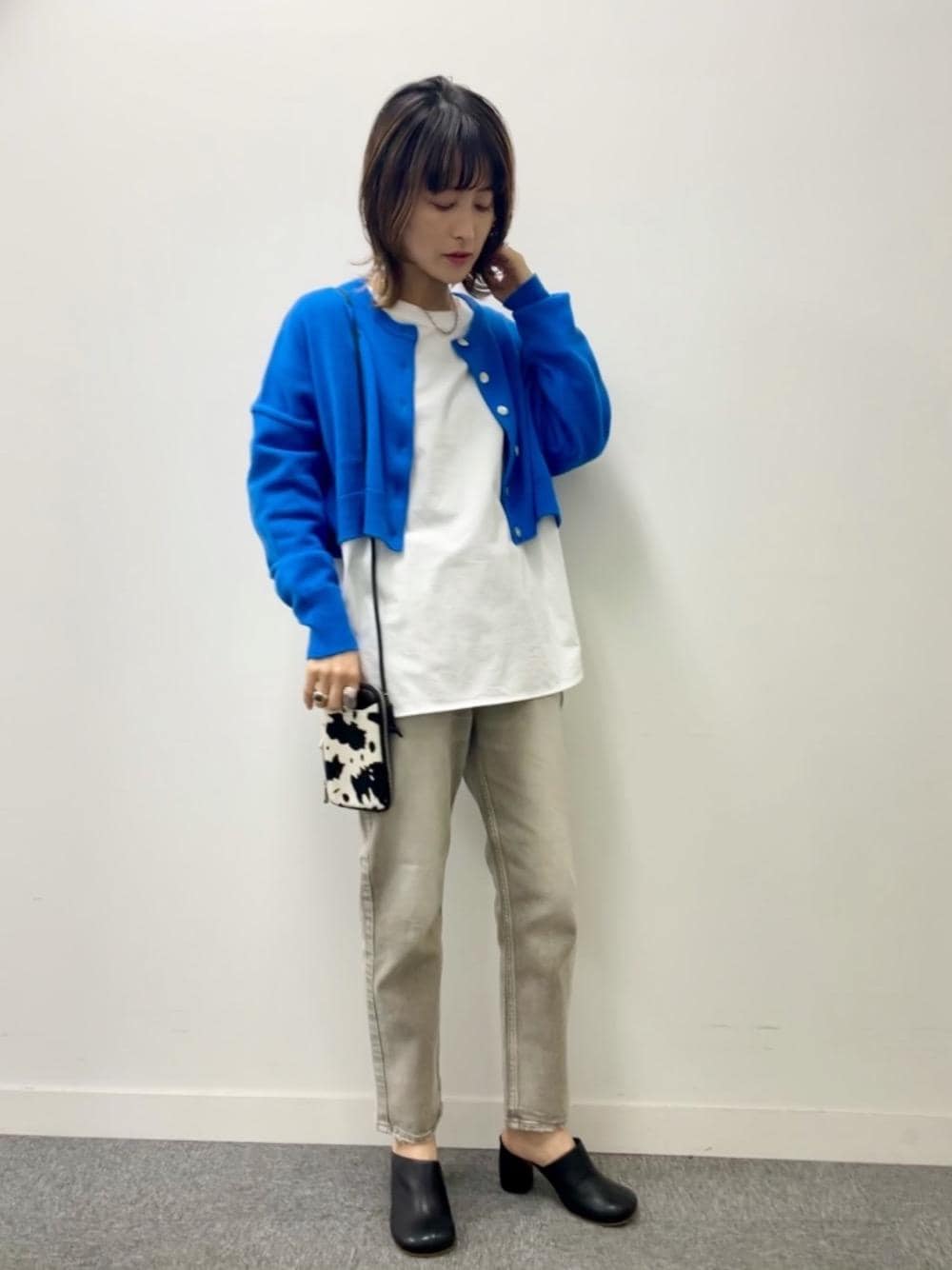 ■ 普段のサイズ感 トップス: S パンツ:S シューズ:23センチ 【サイズ感】 カーディガン:ややゆとりのある身幅 デニム:フィット感がありスッキリとしたシルエット アウター:フリーサイズのためややゆったりとしたサイズ感 シューズ:標準的 【素材感】 カーディガン:コットンアクリルの程よい肉感 アウター:とても軽い着心地でハリのある素材感 【コーディネートポイント】 マニッシュなスタイリングにしてみました!シンプルな着こなしにショート丈のカーディガンを合わせる事で新鮮なスタイリングに仕上げてくれます。