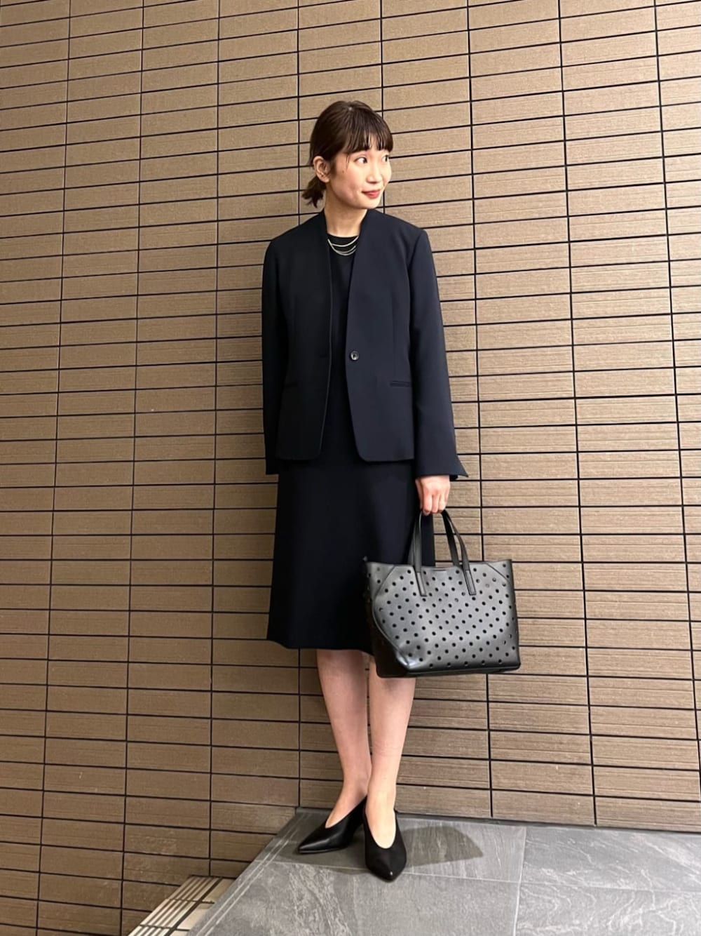 ● 身長 165cm ●年齢 30代前半 ●サイズ トップス•ワンピース:M ボトムス:M シューズ:24.5cm 【サイズ感】 ジャケット:標準的です。 ワンピース:標準的です。 【コーディネートのポイント】 セレモニーでお召しいただけるジャケットとワンピースを合わせました。