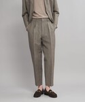 ◇サイズ感 【カットソー】:ややゆったり。 【パンツ】:ややゆったり。ワイドテーパードシルエット。 【シューズ】:スニーカーサイズ26.5cmで8がジャストサイズ ◇スタイリングポイント 夏場の王道のスタイリングであるTシャツ×パンツをややキレイめにまとめたスタイリング。 全体的に渋さを感じられるくすんだ色合いでまとめながらも足元はブラックのサンダルで引き締めました。
