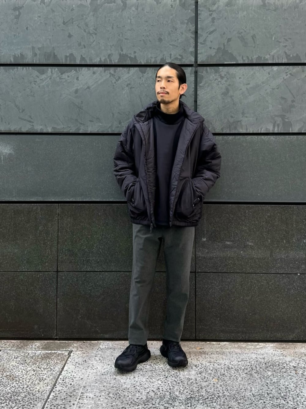 ◇サイズ感 【ブルゾン】:ややゆったりめ。 【カットソー】:ややゆったりめ。 【パンツ】:標準。 ◇スタイリングポイント UNDER URMOUR×UNITED ARROWSのアイテムをすっきりめのパンツでよりアーバンな雰囲気にまとめました。