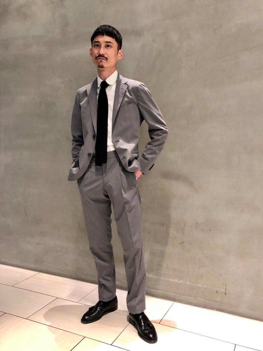 快適な着心地をもたらすストレッチ性に加え、シワになりにくく、品のある素材感が特徴のセットアップ。 タイドアップにてビジネスシーンでの着用をイメージ。シックにブラックニットタイを合わせました。