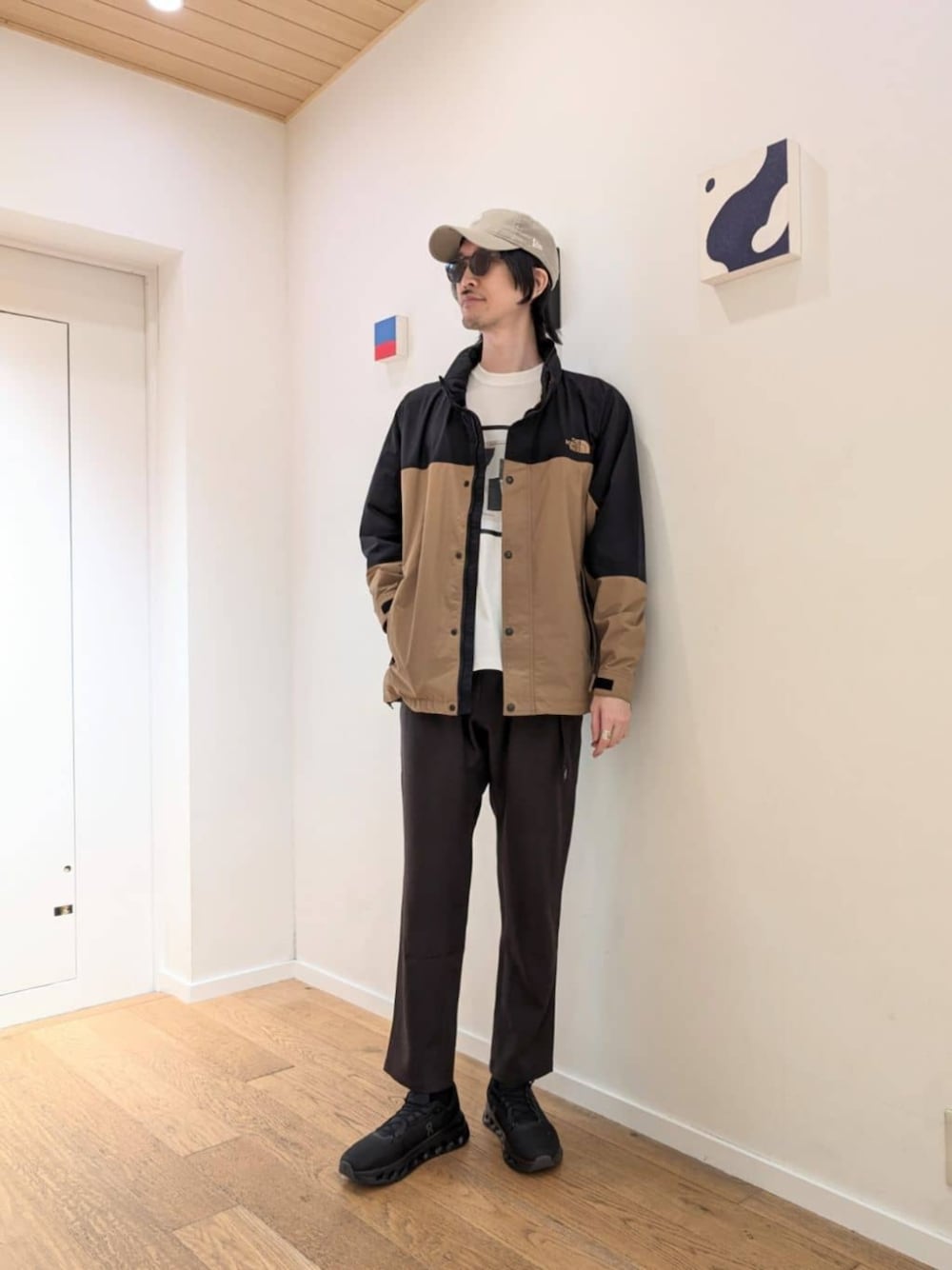 【サイズ感】 ジャケット:程よくゆったり Tシャツ:程よくゆったり パンツ:ヒップ・太もも程よくゆったり、裾周り程よくすっきり シューズ:標準的 【ポイント】 近年注目されている「ゴープコアスタイル」。アウトドアテイストをよりデイリーに、よりスタイリッシュに適応させたスタイルを示します。今回は悪天候にも対応するジャケットをメインにスタイリング。ブラウンベースにまとめ、インナーにも自然味ある色合いのプリントTを選びました。機能的ながらも、洗練された印象のスタイルです。