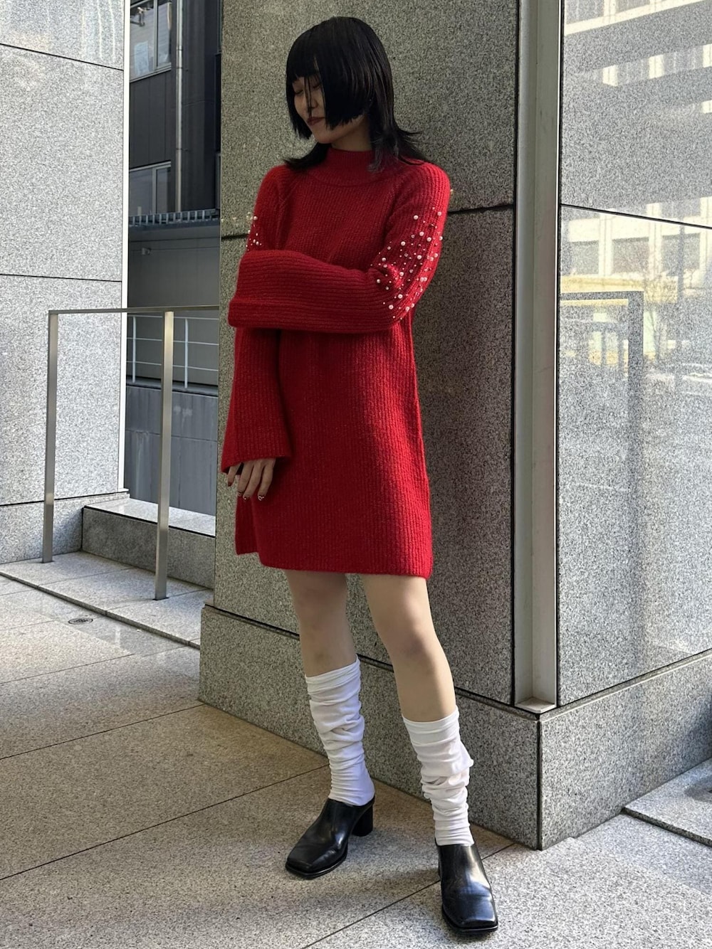 1枚で着映えするニットワンピース! 赤を選べばより華やかに♡ クリスマスだけでなく新年会やバレンタインにもオススメです☺︎ 足元をミュールにすれば軽い印象に♡