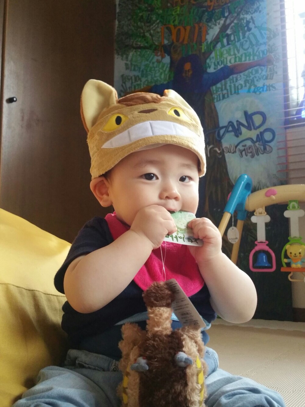 ネコバスが、ネコバスを喰らう。 昨日も保育園で友達の指を喰らい、泣かしたようです。 先が…おそろし。