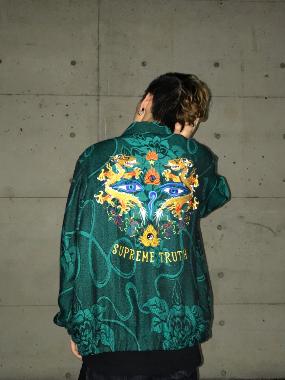 グリーン系のジャケット/アウターを着用したメンズの秋コーディネートの1枚目の写真