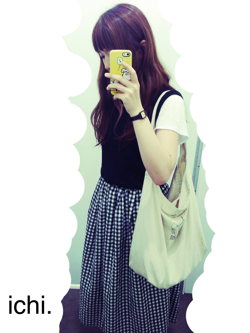 ichi.のワンピース「!KBF スウェットmixギンガムチェックワンピース」を使ったコーディネート