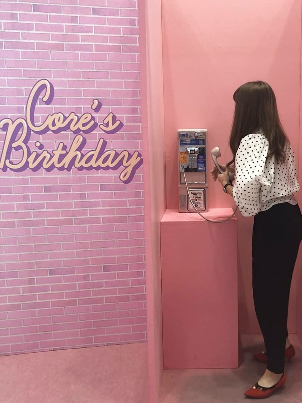 大好きな水玉に キレイめパンツで 差し色に赤のパンプスを👠💕