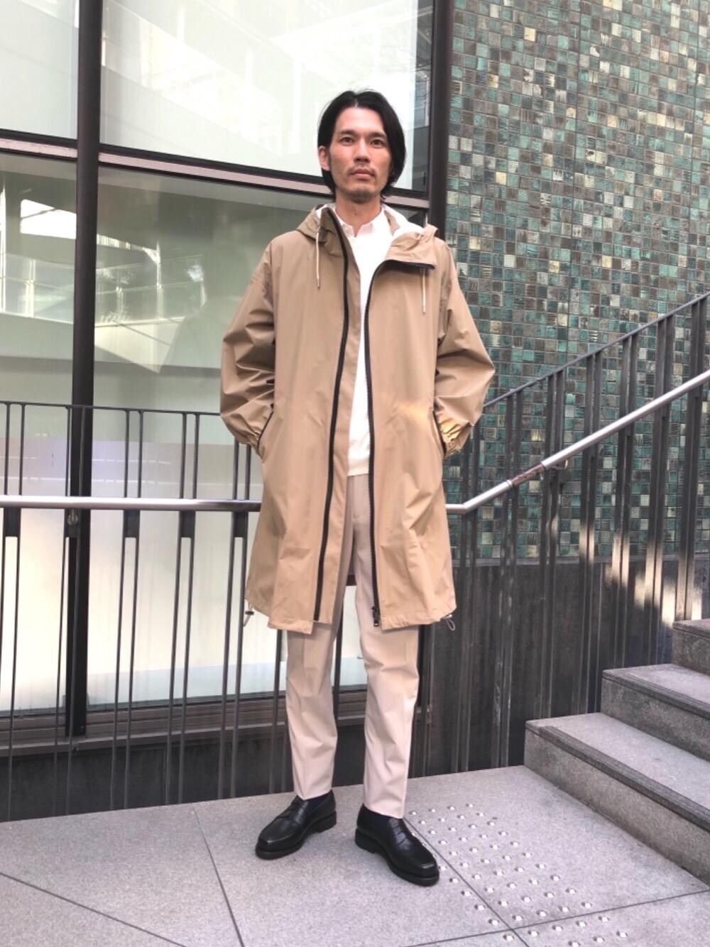 ユナイテッドアローズ別注マッキントッシュのコートはお仕事、カジュアルどちらの場面でも活躍するアイテムです。 足元は少しボリューム感のある黒色のローファー。 淡色系の色合わせの中に黒を入れることで、甘くなりすぎないスタイリングを意識しました。