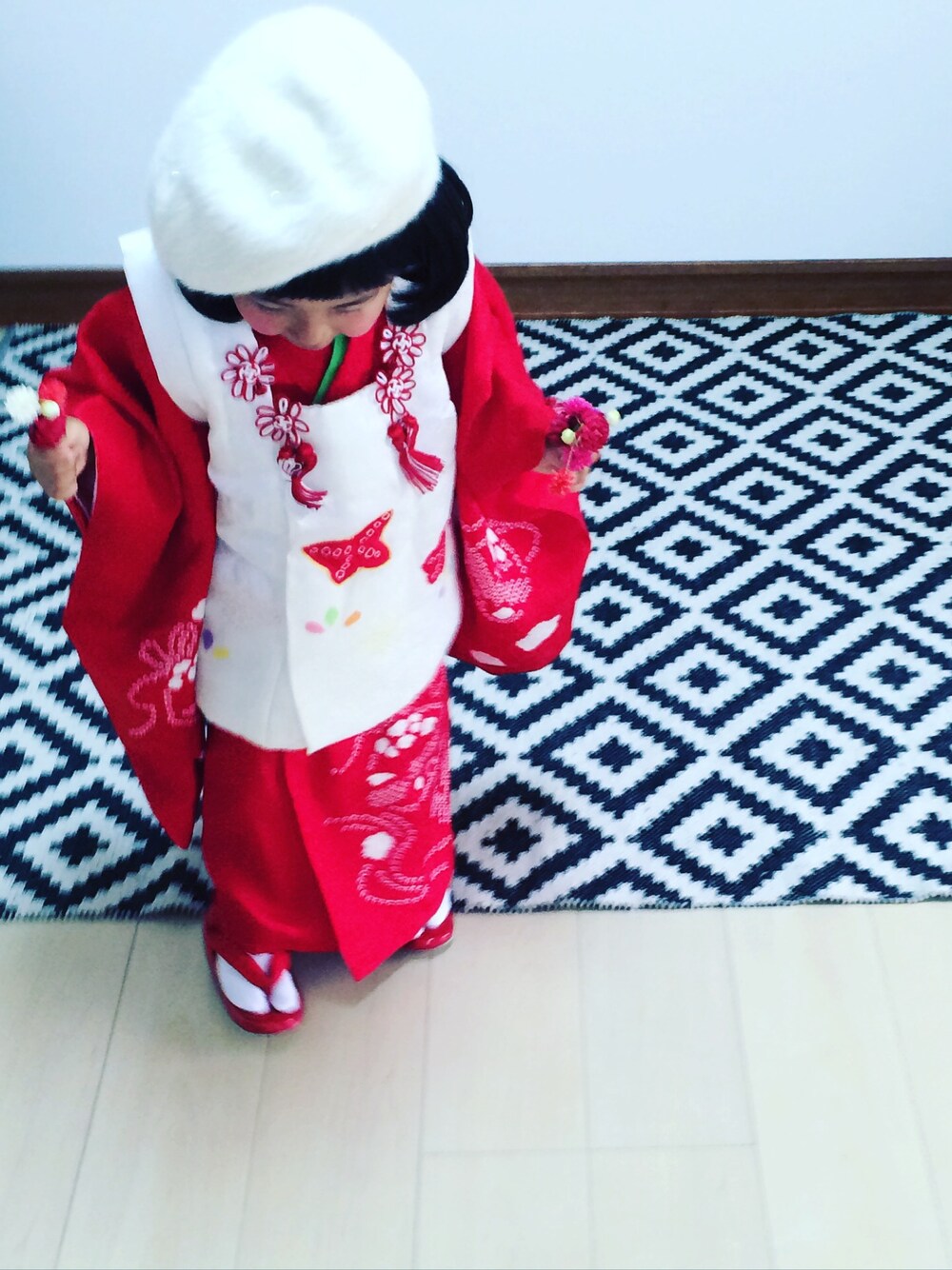 「ちょっときてみる」 ばーば ありがとう 3歳は 赤ちゃんらしい シンプルで 和風が 好み❤︎ 七五三 晴れますように…☀︎