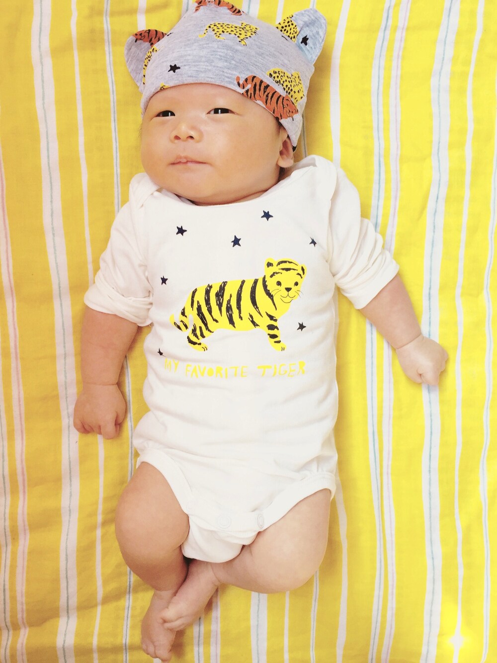 インポート生地で作ったリバーシブルのおくるみ。買った方が安くついたww 涼しい〜顔して、、、ながーーーい屁っ。(゚O゚)