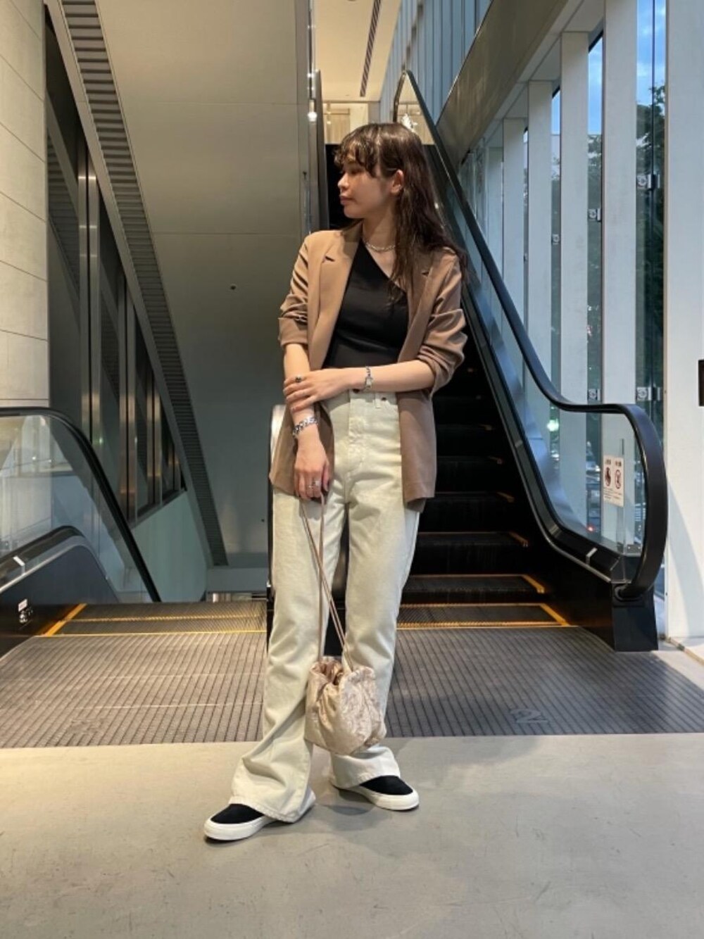 ■身長:165cm ■ 普段のサイズ トップス: M ボトムス:M(丈によってはL) シューズ:25cm 【サイズ感】 ジャケット(M):少しゆとりあり インナー(Free):ぴったり パンツ(M):ゆったり。丈長め シューズ(25cm):少しゆとりあり 【素材感・着心地】 ジャケットは裏地がついていないので夏から秋にかけて涼しく着用できます。 インナーはカップの下にゴムが付いているので腕をあげたり、体を捻ったりしてもズレにくかったです。 パンツはバックスリットがかわいく、今っぽいシルエットで着用できます。色もホワイトを選べばオールシーズン着用できそうです。