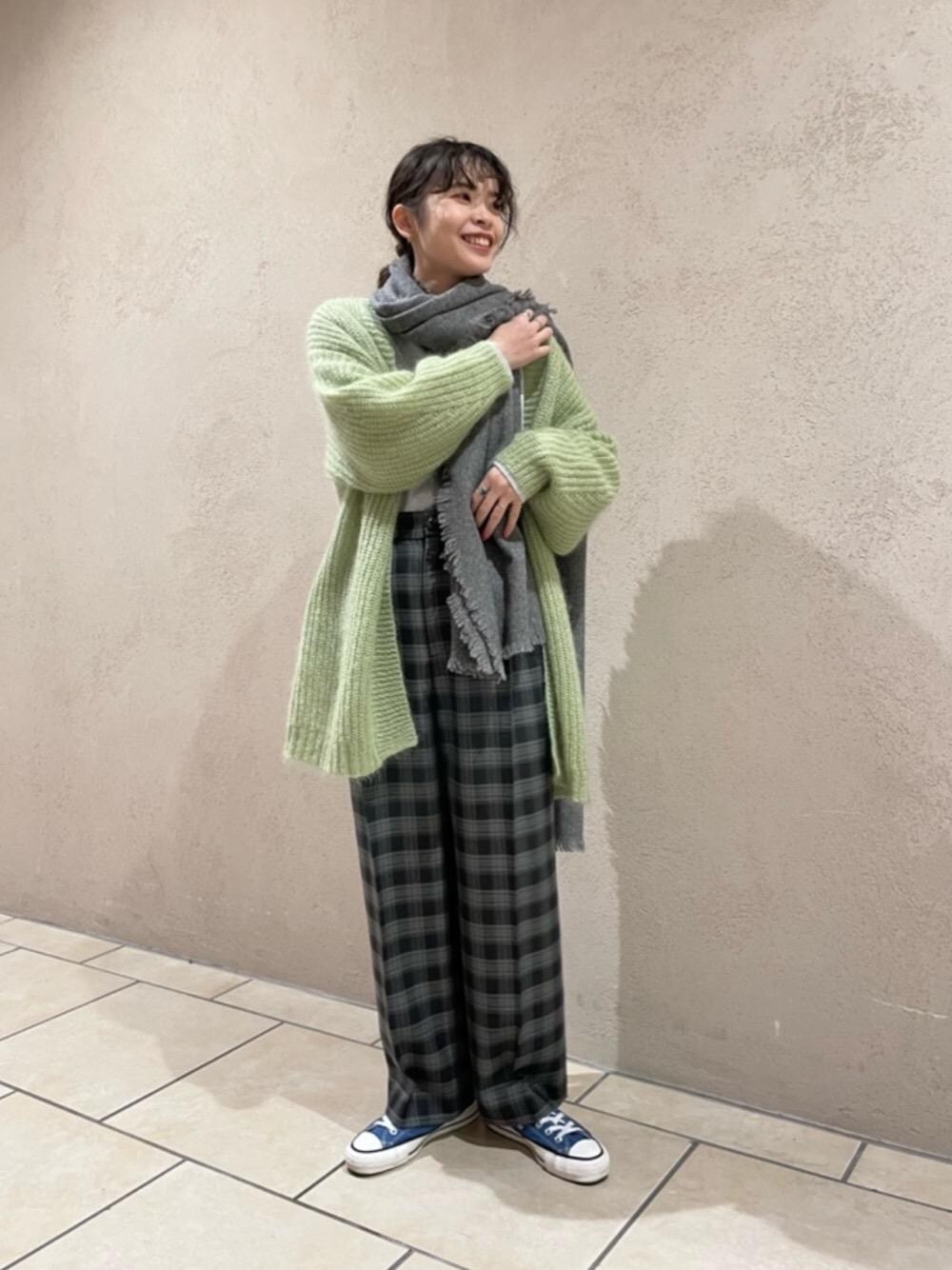 ■身長:166cm ■ 普段のサイズ トップス: M ボトムス:M(丈によってはL) シューズ:25cm ■着用サイズ トップスすべて: Free パンツ:M ■素材感・着心地 カーディガンはチクチク感がなく、ふわっと柔らかい着心地です。 発色も綺麗でアクセントになりますし、春まで着られそうです。 パンツは丈が長めで、ブーツなどのヒール合わせも可愛いです。
