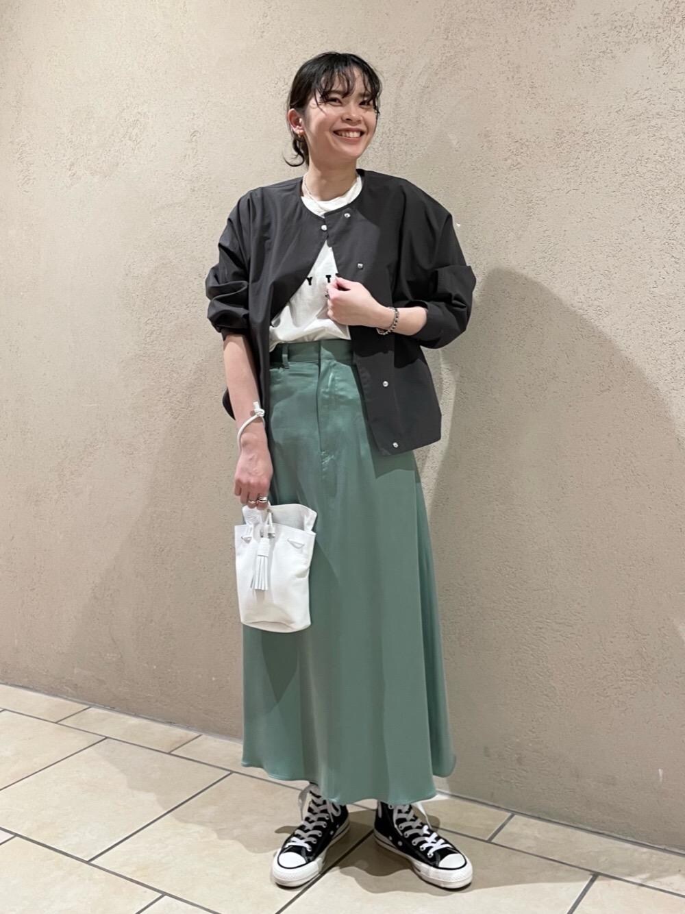 ■身長:166cm ■ 普段のサイズ トップス: M ボトムス:M(丈によってはL) シューズ:25cm ■着用サイズ アウター:S Tシャツ:Free スカート:M シューズ:25cm ■素材感・着心地 アウターはシャツ感覚で羽織れるので、梅雨時期の羽織や夏の冷房避けとしてもお使いいただけます。 スカートは動きが軽やかです。 ポケットなどの装飾があるので、お腹周りも気になりにくいです。