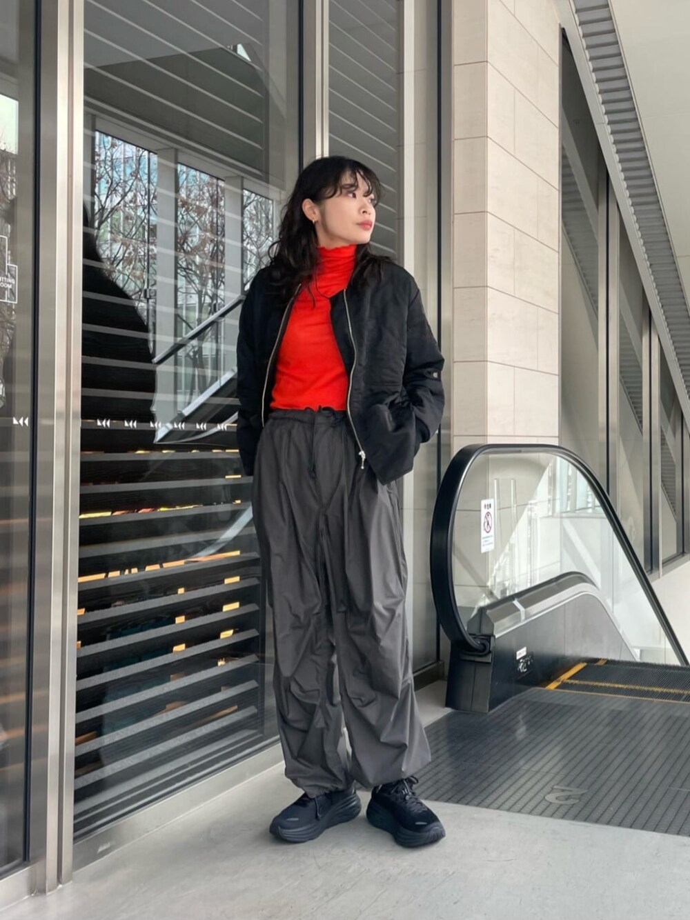 【サイズ感】 インナー:ぴったりめ アウター:程よくゆとりあり パンツ:大きめ シューズ:ぴったり 【コーディネートポイント】 インナーのオレンジを差し色に、落ち着いたトーンでコーディネートしました。