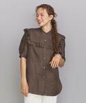 身長:150㎝ 普段サイズ:トップスS/ボトムスS/シューズ23 【コーディネートポイント】 フリルがポイントになるブラウスを羽織り、ロゴTを合わせカジュアルダウンすると、フェミニンになり過ぎず、普段ラフなスタイリングが多い方にもオススメの1着です。 【素材感、着心地】 トップスは麻素材の為、梅雨時期から夏場までさらっとお召し頂けます。大人気のパンツはウエストゴムと程よいリラックス感でブラウス合わせだけでなく、Tシャツ合わせでもこなれ感が出てカジュアルダウンにしても素敵です。