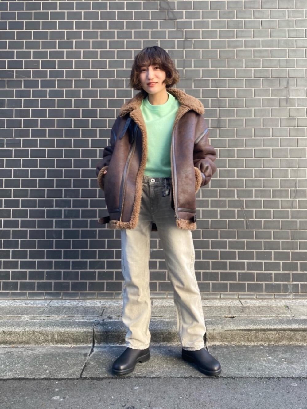 身長:150㎝ 普段サイズ:トップスS/ボトムスS/シューズ23 【コーディネートポイント】 ビューティアンドユースオリジナルのB-3をメインに、インナーのニットは目を惹く鮮やかなグリーンを着用しました。ボリュームアウターでも、ペールトーンを差し色にするとメンズライクになりすぎず、オススメです。 【素材感、着心地】 アウター:かなり軽くボアなので暖かく、羽織りやすいです。 デニム:スモーキーなカラーが特徴のデニムは馴染みよく履きやすいです。 シューズ:レザーなので重厚感があり、様々なスタイリングに対応します。