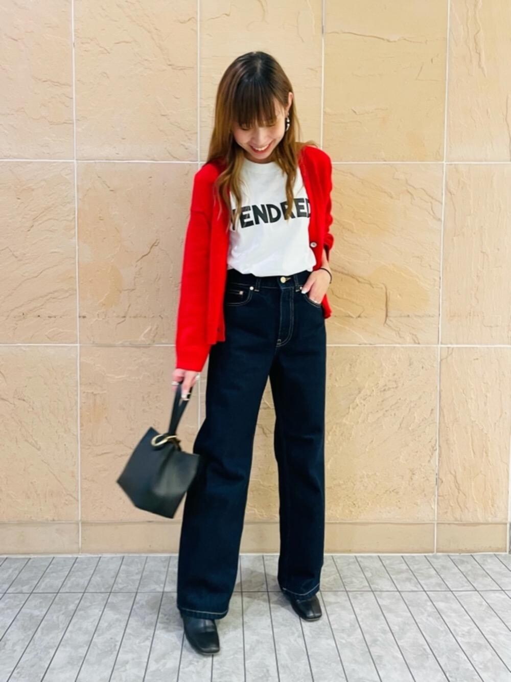 [身長] 153cm [普段サイズ] トップスS(36)/ボトムスXS(34)/シューズ 23.0-23.5cm [サイズ感] トップス:程よいルーズ感 カーディガン:ゆったりとしたシルエット デニムパンツ:ウエスト周りややゆとりあり/着丈やや長め [素材感] トップス:肌触りのよいコットン100% カーディガン:ふくらみ感あり/適度な伸縮性あり デニムパンツ:程よく柔らかなデニム生地/伸縮性なし [着心地] トップス:軽い着心地 カーディガン:肌触りもよく季節の変わり目の羽織としてちょうどよい デニムパンツ:程よいルーズフィット [コーディネートポイント] 鮮やかな色のカーディガンを差し色に、デニムを使って大人なカジュアルスタイルに。 ショート丈の羽織を合わせることですっきり見えし低身長の方にもおすすめです。