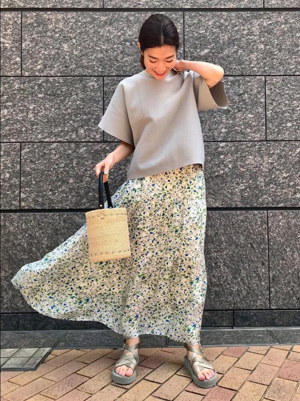 西川 夕紀子のハンドバッグ「UWFM ABACA スタッズ バケット バッグ †◆」を使ったコーディネート