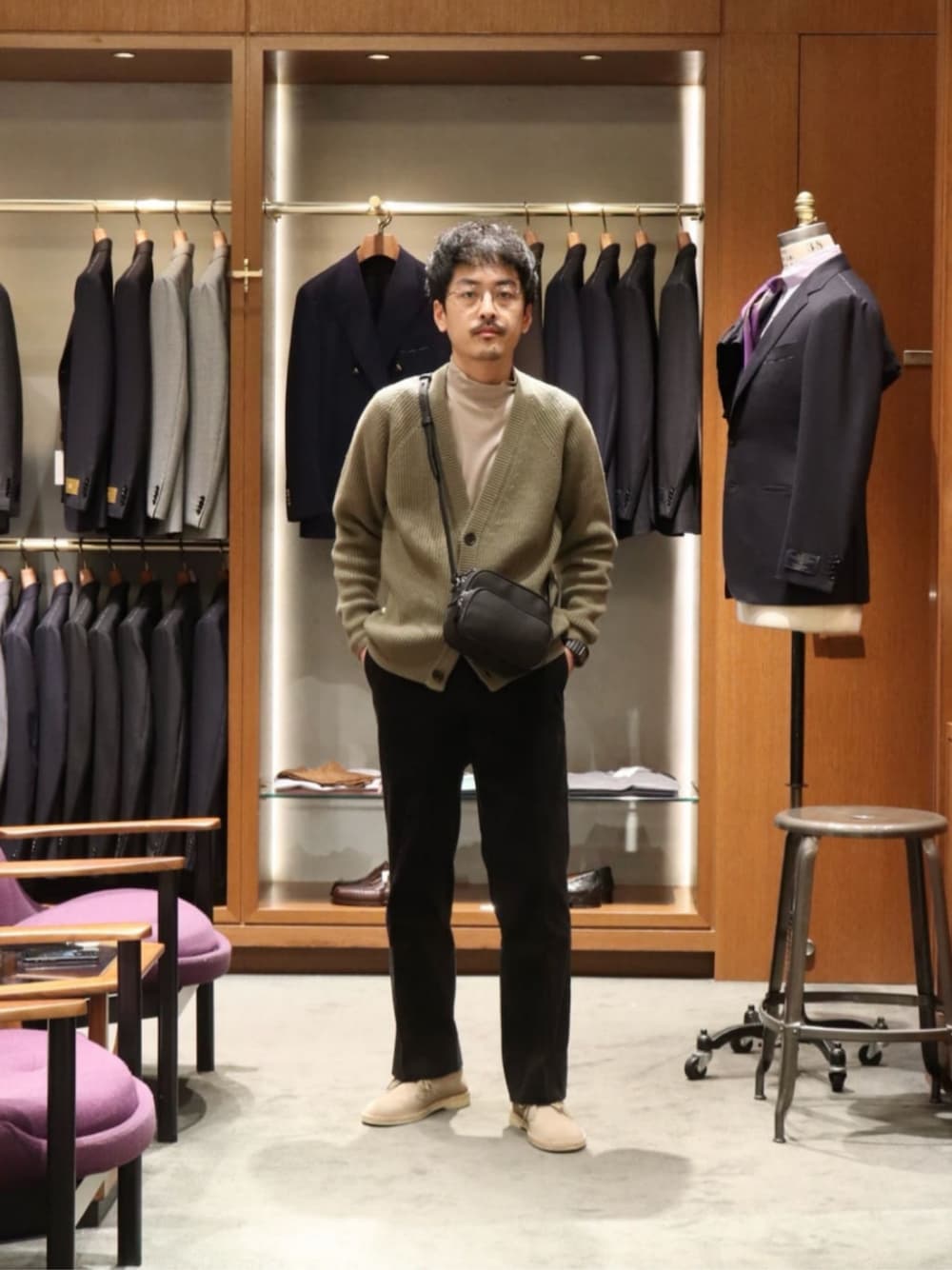 ・年齢:30代半ば ・身長:173cm ・普段サイズ:トップス M/ボトムス M/シューズ 27.0cm 【サイズ感】 カーディガン:程よくゆったり インナー:ゆったり ボトムス:標準的 シューズ:7h 【コーディネートポイント】 春先まで活躍するカーディガンスタイル。 ブラックのコーデュロイスラックスで都会的なスタイルにしました。 マイクロファイバー素材でレザー見えするショルダーバッグを持つとスタイリッシュに見えるコーディネートになります。