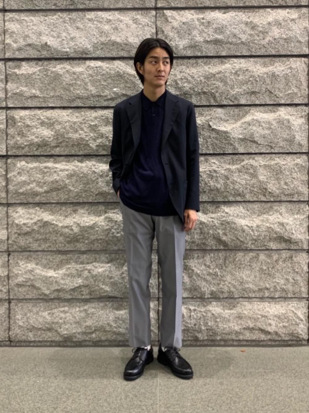 身長:178cm 普段のサイズ:トップスLサイズ、ボトムスMサイズ <サイズ感> トップス:標準サイズ インナー:ややゆったり ボトムス:標準サイズ シューズ:標準サイズ <素材感> インナーのニットポロシャツはウール生地を使用。 ジャケットはポリエステルと麻を使用しボトムスには綿とポリエステルを使用。 <着心地> ニットポロシャツは柔らかさのある生地となり包まれるような着心地となっております。 パンツはストレッチ性があり長時間の移動やお仕事使いにもおすすめです。 <コーディネートポイント> ニットポロシャツをインナーに使用することで、ON.OFF兼用でのスタイリングが可能です。 ジャケットを脱いだ際も1枚着として着用していただけます。